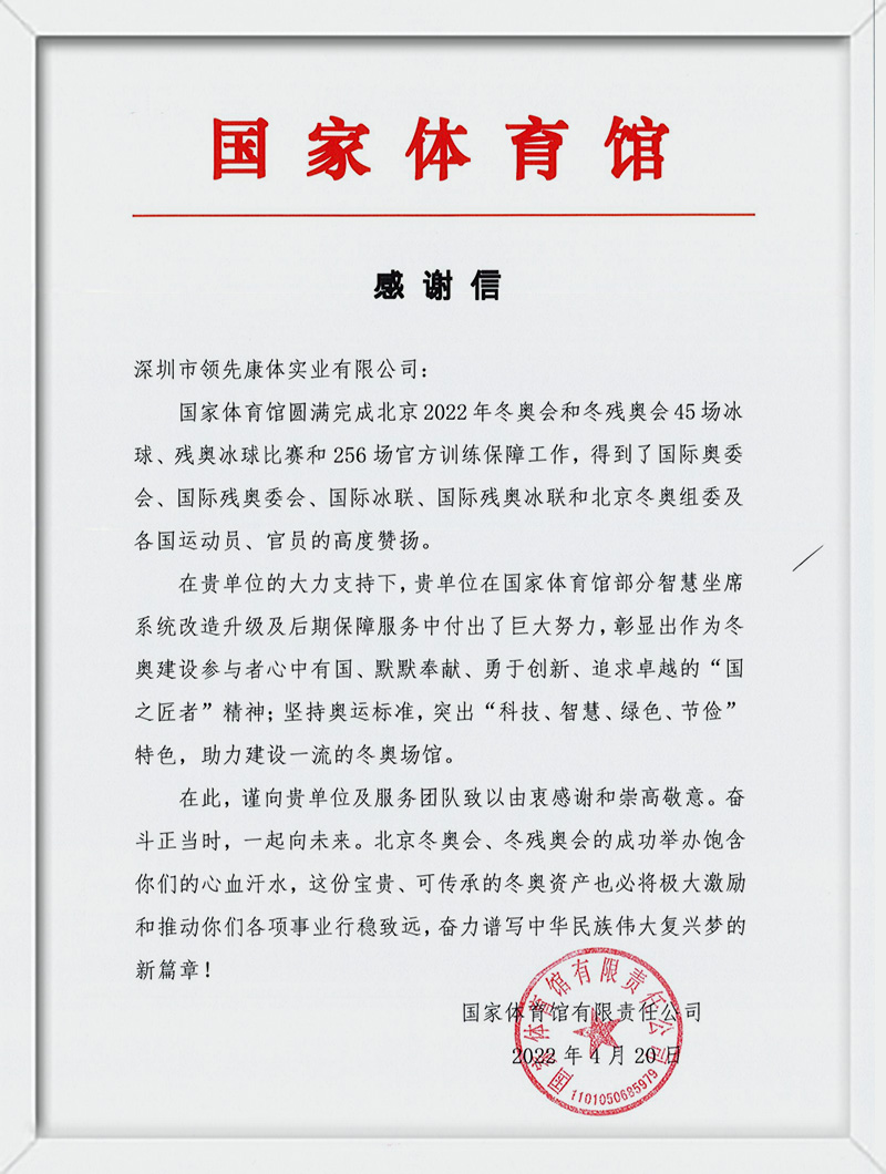 国家体育馆表扬信